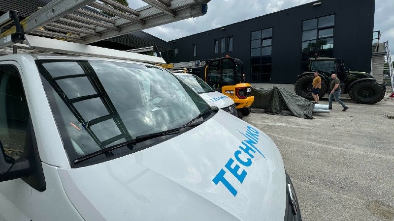 Met een team van drie monteurs werken we al sinds na de bouwvak aan dit complex. Techniko verzorgt de volledige elektra- en waterinstallatie, plus alle klimaat- en beveiligingssystemen. Van de eerste kabels in de fundering tot de laatste lampen in het kantoor - alles komt uit één hand.