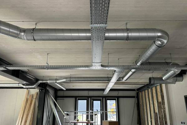 We zorgen dat alle systemen netjes weggewerkt worden. Kabelgoten worden met voldoende bevestigingspunten opgehangen voor een strak resultaat. In zo'n groot complex gaat ongeveer drie kilometer aan kabels - alle elektra wordt door de wanden weggewerkt en alles voorbereid voor het systemplafond.